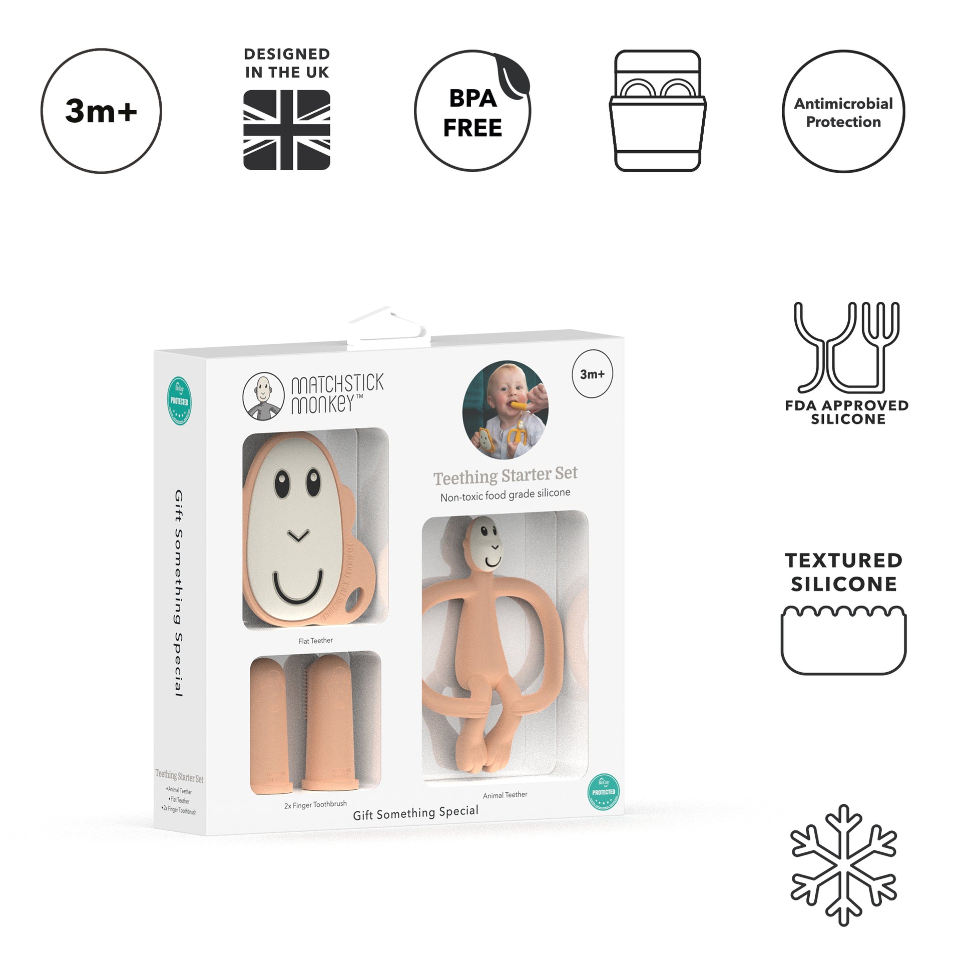 Gjafasett Matchstick Monkey er nytsamleg gjöf fyrir kríli í tanntökuferlinu