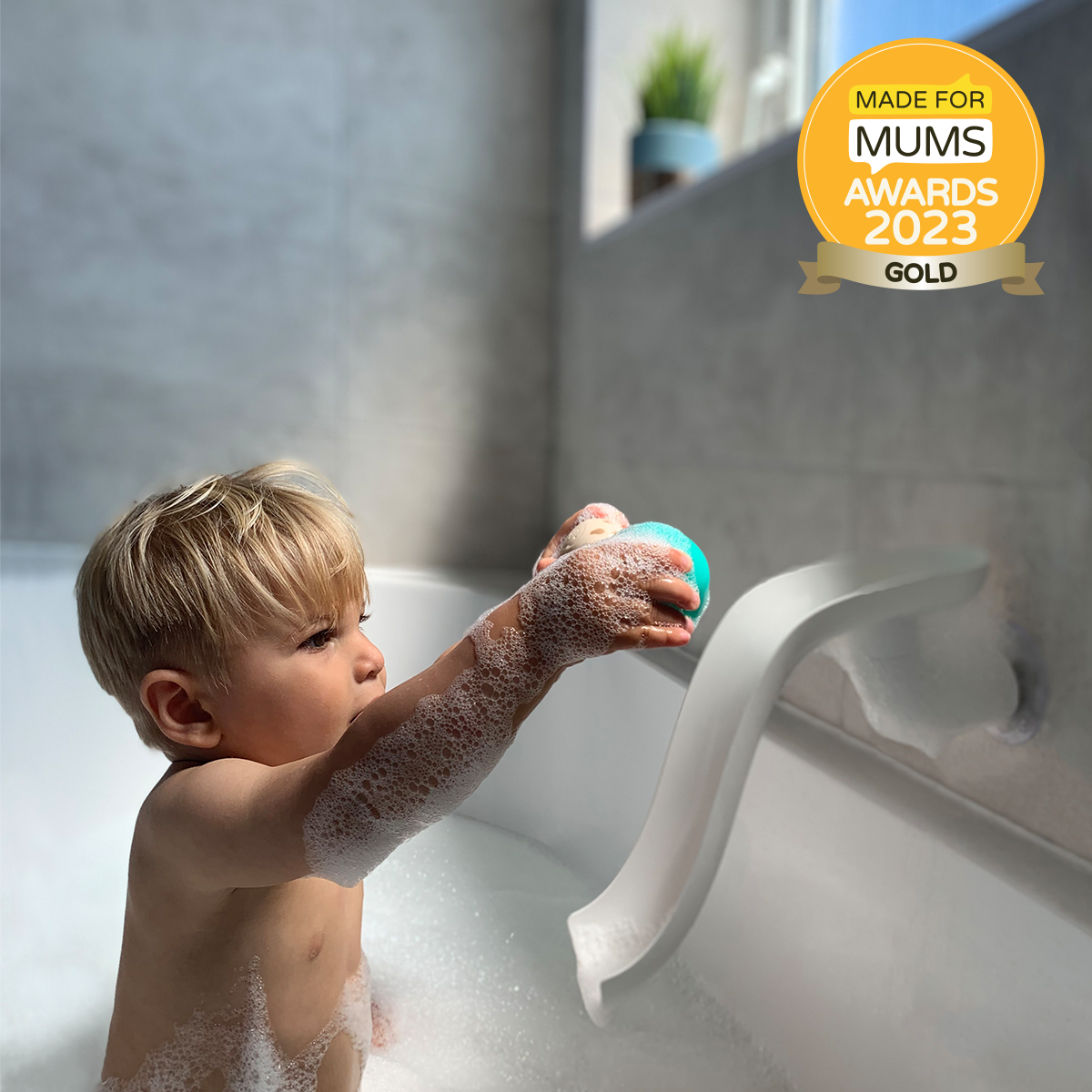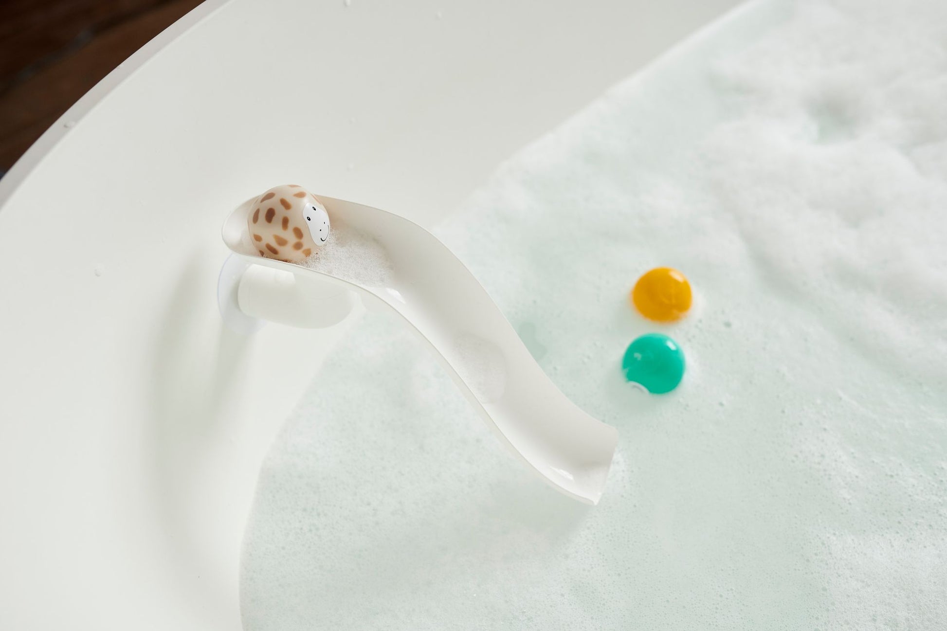 Baðrennibraut Matchstick Monkey festist með sogskál við baðkarið eða vegginn.